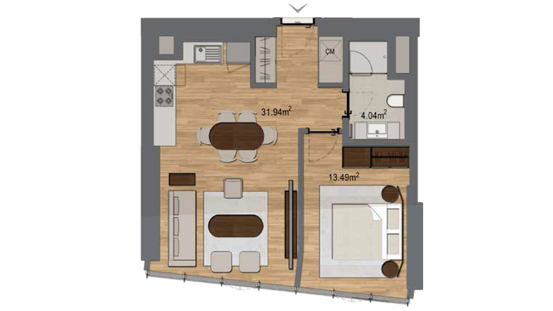 1+1 70m2 Apartment Plan